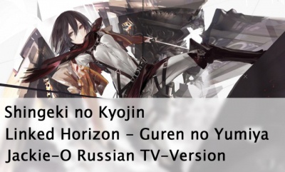 Ура, товарищи! У нас в команде появился и мужской вокалист - Jackie-O (напомню, что женсий вокал у нас - Marie Bibika), прошу любить и жаловать! Зовут Jackie-O - Евгений, и мы к вам с подарочком) Думаю этого вы не ожидали никак!) Перепевка 1-го опенинга аниме "Вторжение Титанов"!